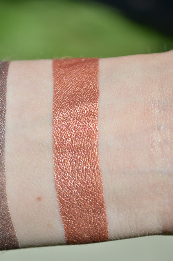 Debonair is SO vibrant! This was a free sample with my purchase, and it is an intense purple with warm, bronzy shimmer. This could be compared to Meerkat, but I see a lot more pink in Meerkat, and its shimmer is a much more intense gold, whereas Debonair certainly leans more copper/bronze in its shimmer. I also found Meerkat’s shimmer to be a bit more upfront/intense than Debonair’s.