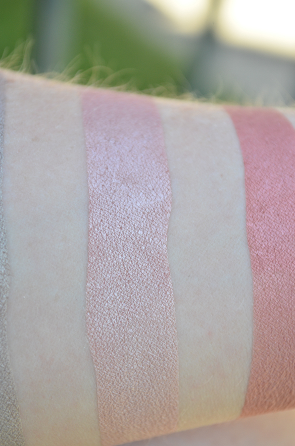 I’ve been happily using my Fyrinnae Pygmy Hippo lip lustre since I received it mid-May, but of course the green-eyed makeup monster within me (in my mind’s eye it has razor sharp eyeliner wings and perfect brows) has driven me to covet that which I do not have… most specifically, I have been eyeing Meloncholy, because I can’t get enough of coral shades. Once I got that far, of course it only seemed practical to also pick up more pink-spectrum neutral-toned shadows, because I recently offloaded my Naked 3 palette after realizing that I love the conceptof it but just find that its shadows are too weak in their performance to validate a $54 palette purchase. This left a chasm! A gaping hole! Why not find other pink/taupe/bronze neutrals to help fill it? And, whelp… that’s how you place another Fyrinnae order. It just so happened that a BUNCH of my indie orders all arrived at once (Pumpkin and Poppy, Hello Waffle, and Darling Clandestine all showed up in my mailbox within 48 hours of each other), so I am in drunken indie product bliss at the moment, and I was so excited about these shades (especially Orangutan!) that I needed to swatch them right away.
