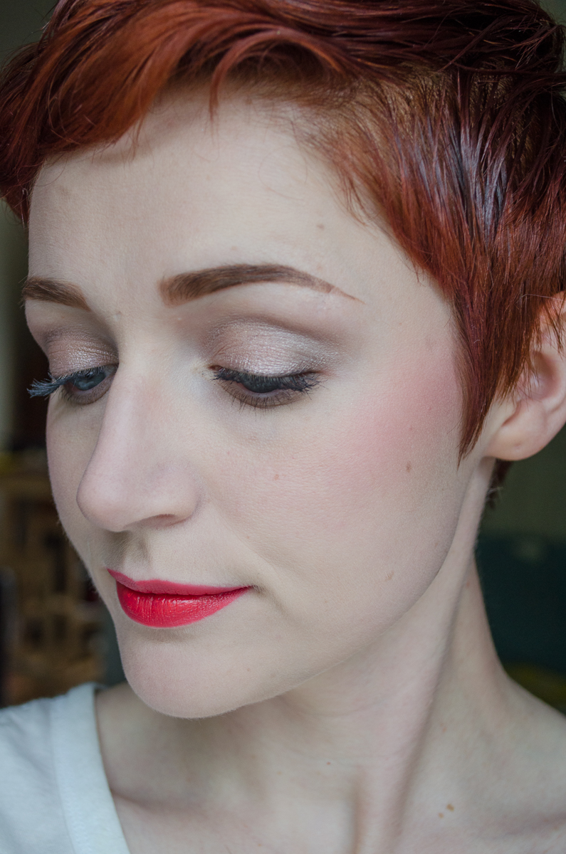I’ve never tried Performance Colors before, but I am really impressed! I haven’t experimented as much with normal lipstick in the indie world just yet… but this definitely has the texture of lipstick we are all familiar with, and the color payoff is terrific. I had breakfast with a friend this morning, and although it faded just a bit, it made it pretty much unscathed through an omelet, cottage cheese, and a ton of iced tea. The color is also pretty dang terrific (corals and roses, man, HOLD ME BACK). I didn’t find it to be drying at all, and it applied well with a lip brush. Also, I love that the name reminds me of You and Iby Ingrid Michaelson.