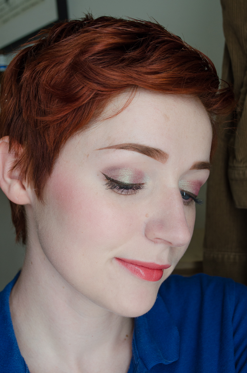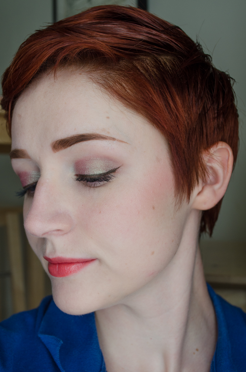 Take that, work day, I’ll have flashy eyes if I want to, even IF it’s 100 degrees out! By the end of the day my makeup looked far from perfect, but I was really surprised at how well everything lasted (sadly I opted for no photos, yes, disappointing). I’ve been using the Palladio herbal foundation primer for about 6 or 7 months now, and it works super well with my MUFE HD foundation, doesn’t break me out, and actually seems to make a great difference in lasting power. I’m giving up on applying foundation the Wayne Goss style, though (powder under foundation)– I end up looking pretty cakey and I honestly don’t think it increases the wear time for me enough to really make a difference. I applied foundation regular style here (primer, foundation, powder) and I think it’s more natural looking, overall. I’ll just have to be envious of those people who it creates the perfect finish for!