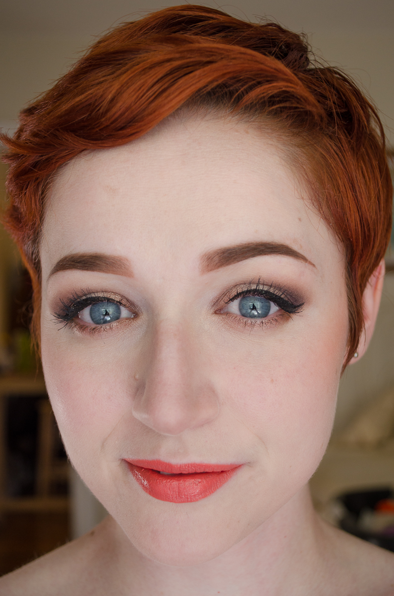 I also received the Lorac Pro 2 palette in my exchange, which I used here. I am really impressed with how creamy the shadows are. I have been using loose indie shadows pretty much exclusively recently (except for my Laura Mercier Artist for Eyes 2013 palette), and nothing is going to displace my indie shadow love, but I’m more than a little bit enamored with this palette. So many mattes! Such a great range between dark and highlight colors!