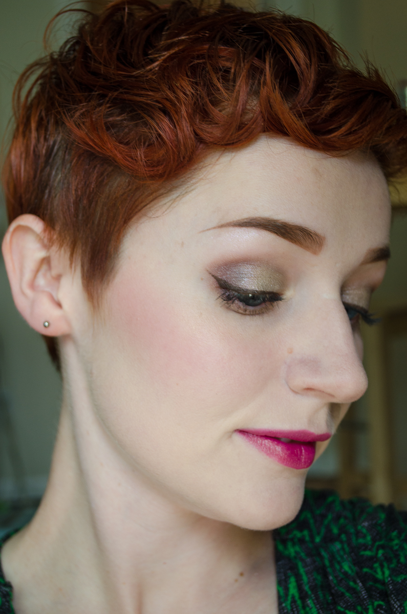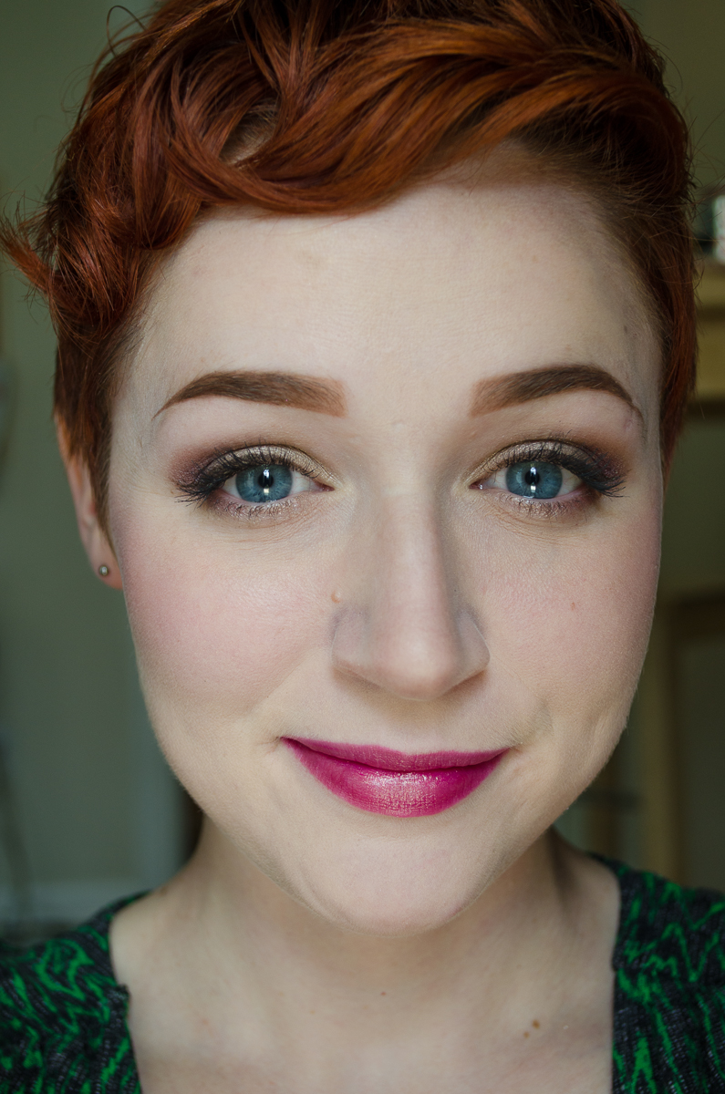 Today was the first day that I used Darling Girl’s Primed and Primped eye primer, and I’m pleased with it so far! I applied all of the shadows over that first, to get the blending I wanted, then tapped a thin layer of Darling Girl Glitter Glue over the shadow. After letting that dry down, I reapplied the shadows, blended through, and got the luminous quality of the shimmers from the shadows that I wanted.