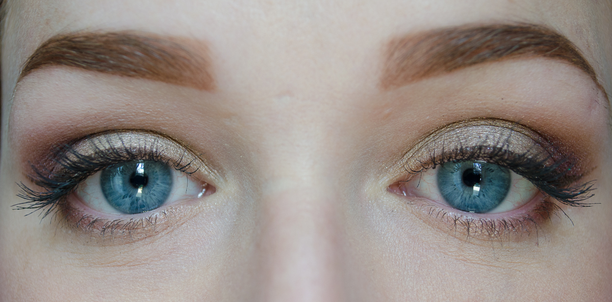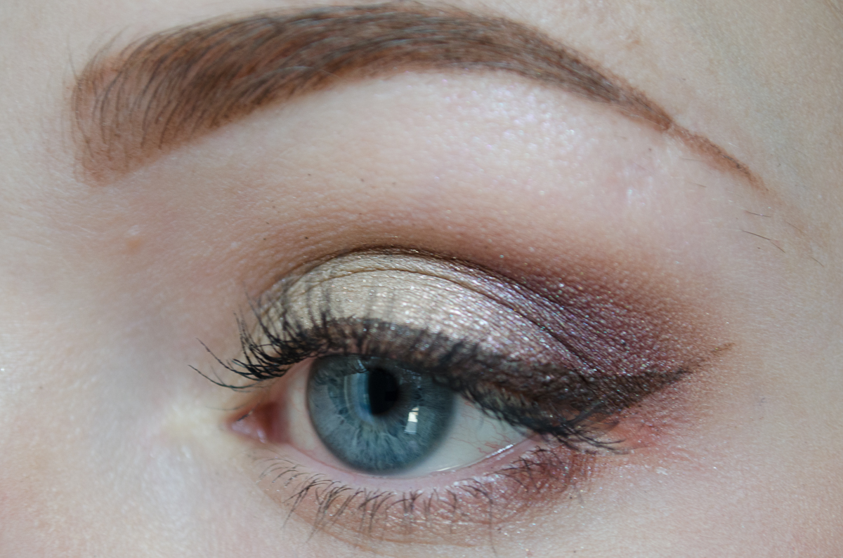 I used Tea Tosh across the lid, blending toward the outer edges and into the crease with Ladder to Hell, and accentuating the outer V with Autumn Flowers.