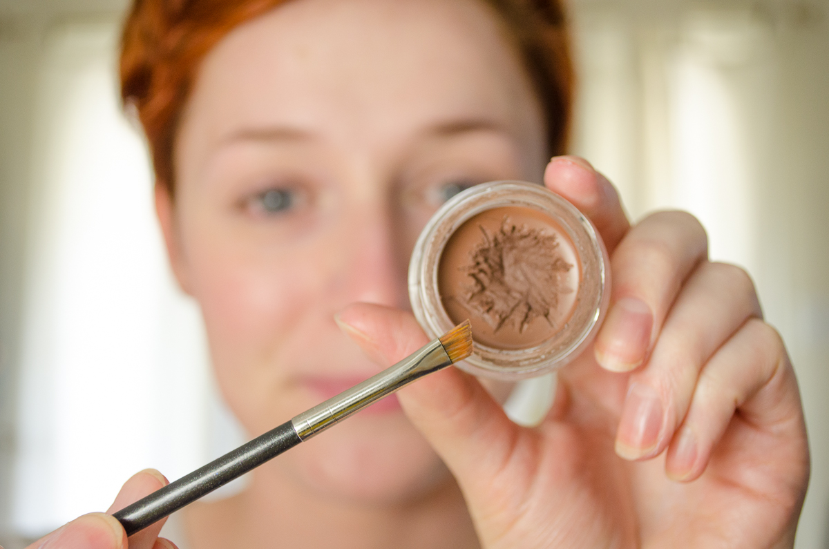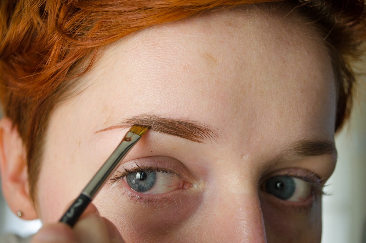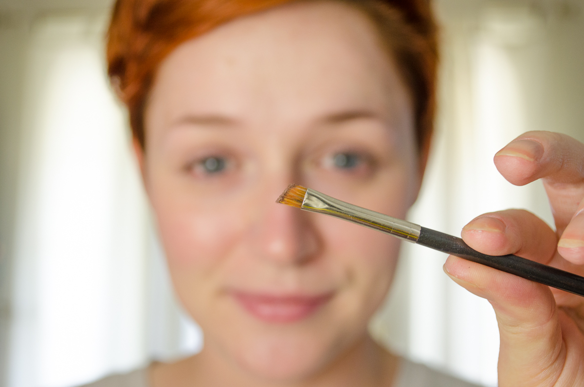 Put some of it on your brush! Too much will be too dark, too little won’t make a line. Practice this a few times, but ultimately with dipbrow, less is more.