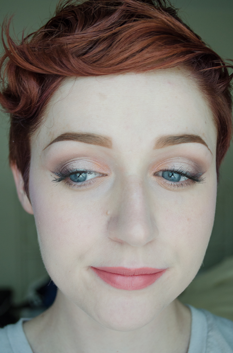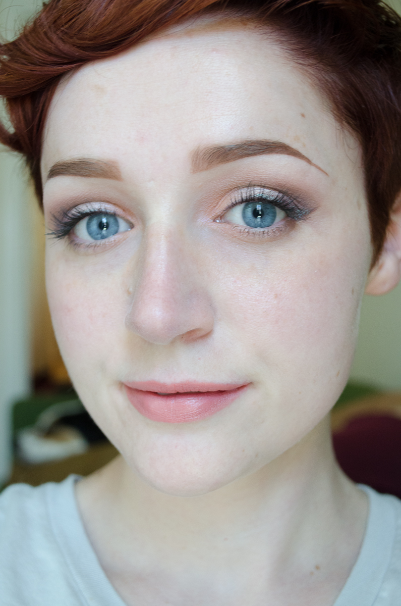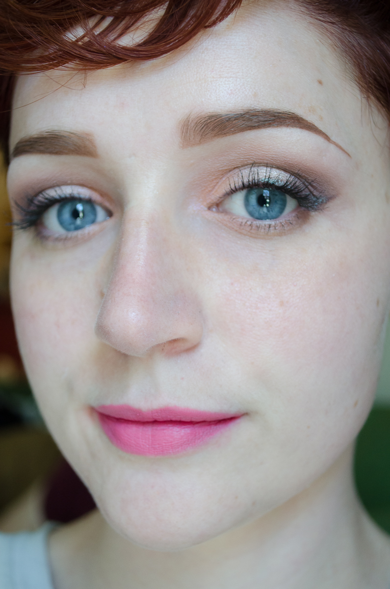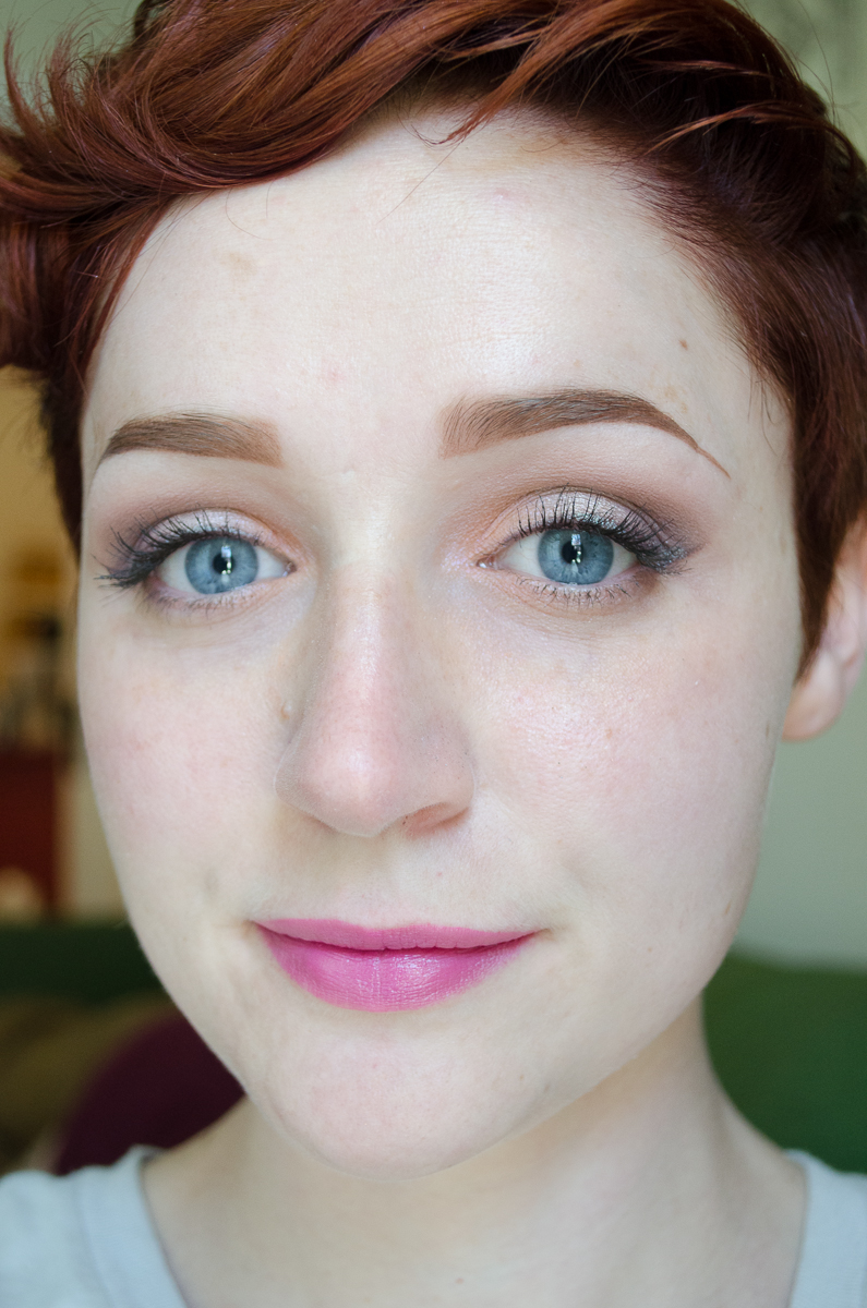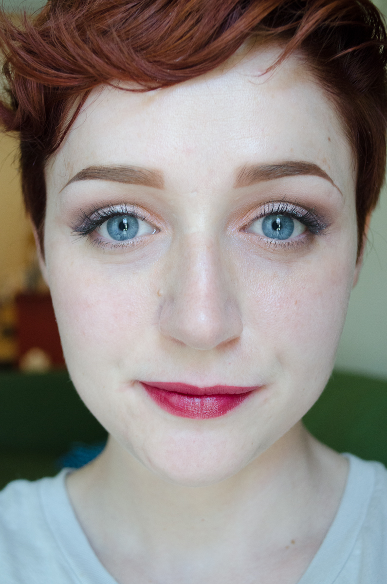 I had the sudden realization that I hadn’t given my Daisybird Cosmetic’s Don’t Be So Loud Lilac blush in a while, so I whipped that bad boy out. I don’t use my purple blushes incredibly often, and found it interesting that this sort of a cool purple gives you color without actually warming up the face a whole lot, so it still makes the rest of my skin look quite pale. No complaints, but it’s definitely a different effect than the red/pink/coral/orange blushes I tend to use.