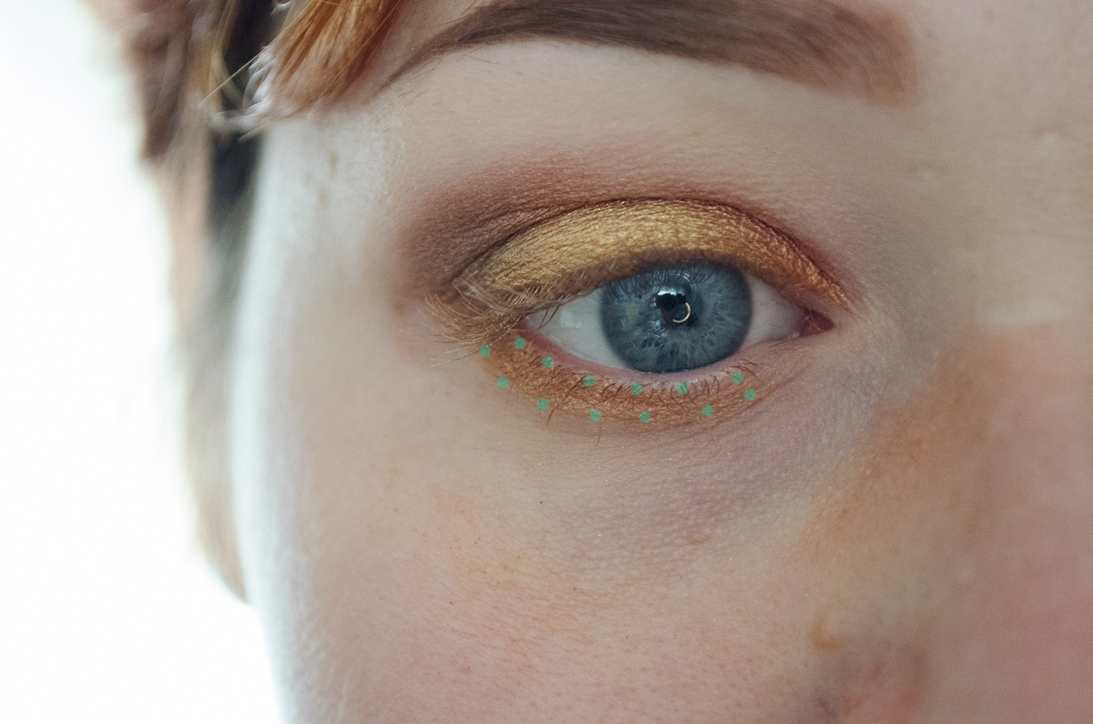 Highlight time! Take a light yellow shadow (or really whatever inner eye highlight you like, I recommend one with more golden tones) and apply to your tear duct. Such shine, so wow.