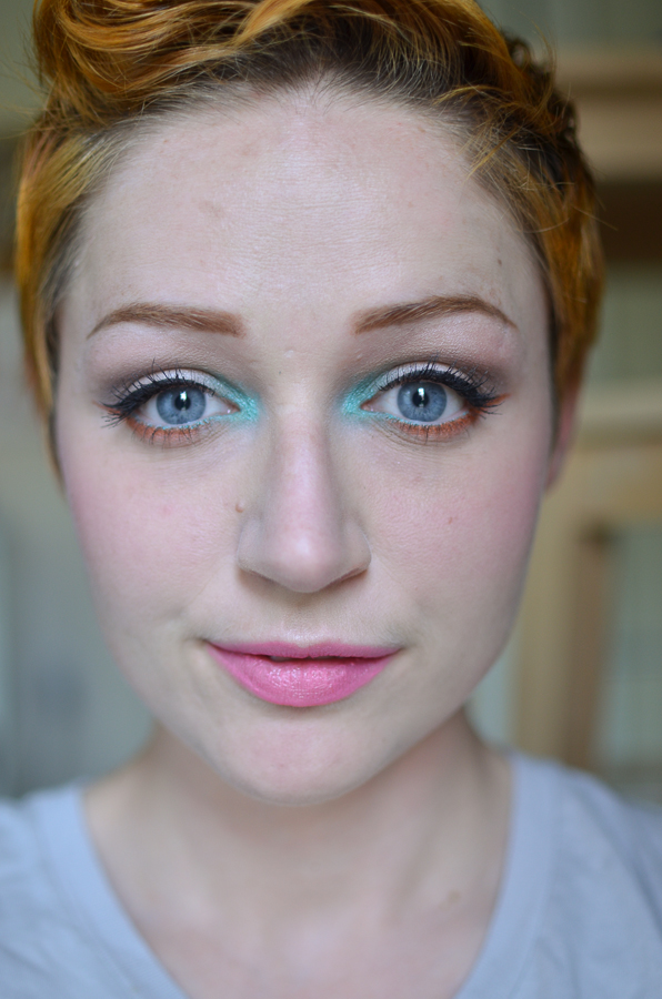 I was inspired by Rebecca Shores’ recent Color Theory for Makeup post (and honestly by all of her incredible looks), especially her ingenious use of pop colors in the inner eye corner. I wanted to do something that utilized this, utilized some bright, summery colors, and tested my lower eyelid shadow application. This coincided with a recent Reddit post from u/HobbitQueen that featured some killer suggestions for rocking statement blush. It occurred to me that since I have a camera, I could indeed take way too many pictures of my entire process of putting this stuff onto my own face, and that other people could perhaps do the same thing by looking at these too many pictures.